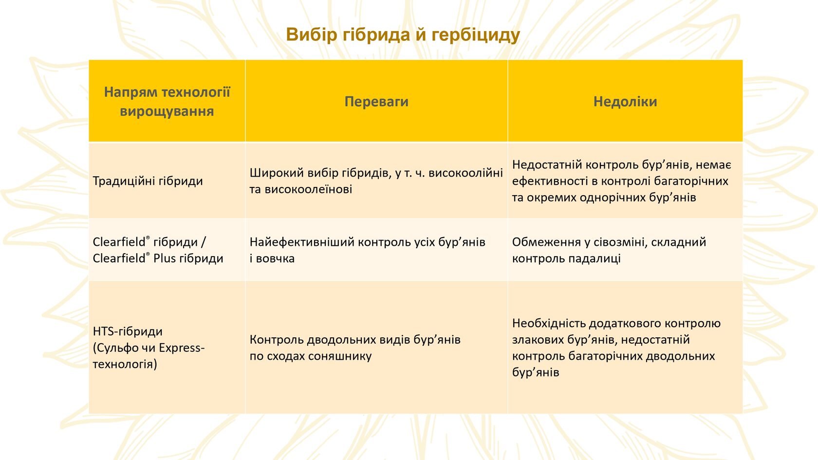 Що стосується вибору гібридів соняшника, то тут пан Малина порадив звертати увагу на наступне: