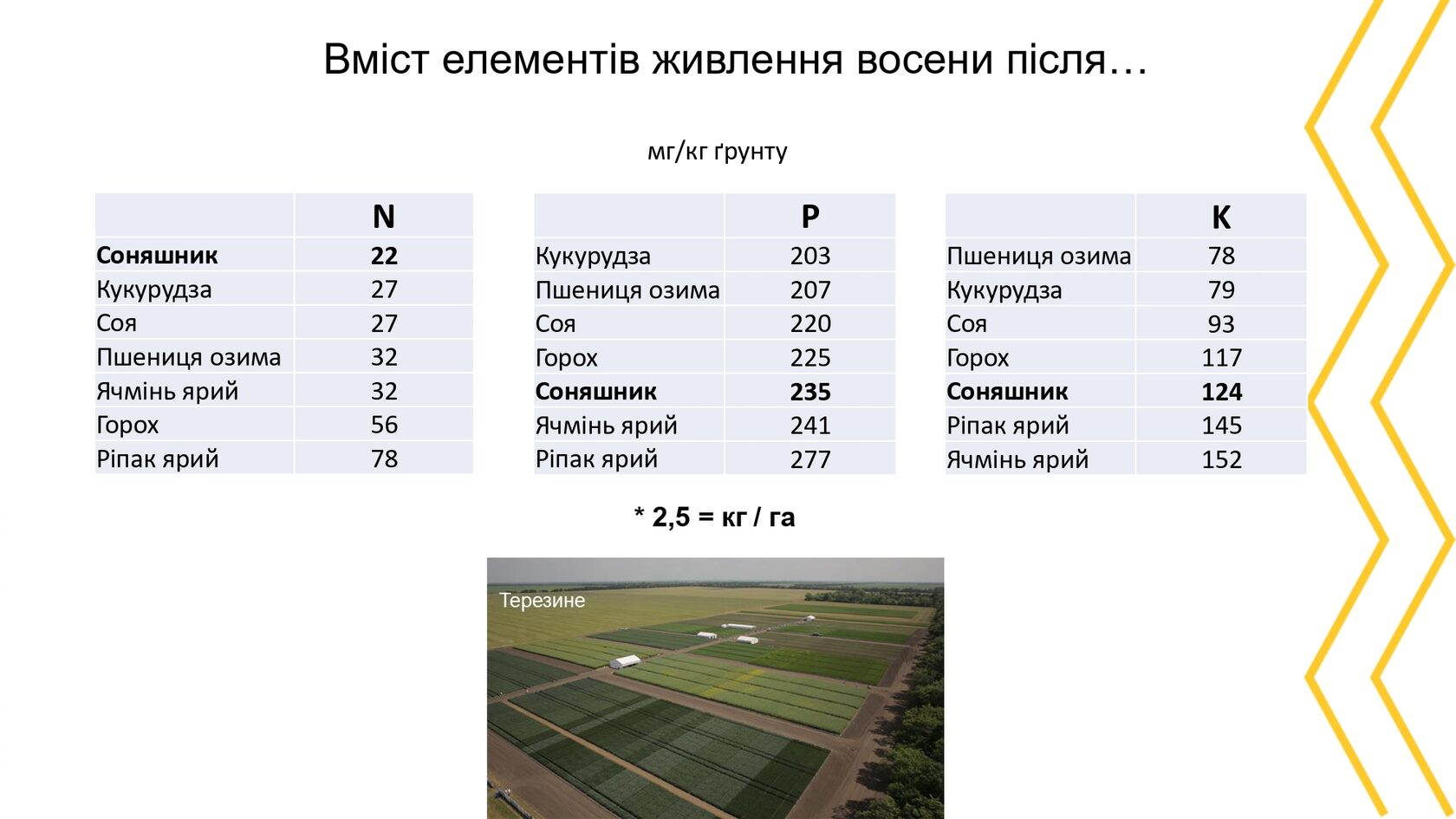 У якості прикладу Сергій Кучеров привів аналіз ґрунту, які його компанія провела в агроцентрі Терезине. Там відібрали достатньо багато зразків з кожного поля та проаналізували вміст елементів живлення після внесення добрив.